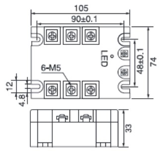 四. 三相固態(tài)繼電器外形尺寸和安裝接線圖:(單位:mm)