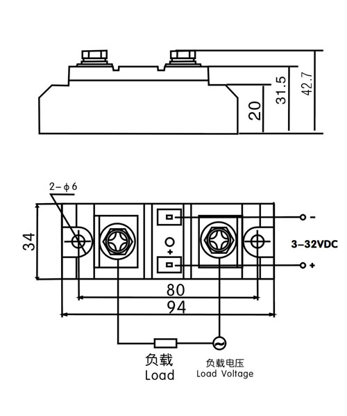 四. 大功率固態(tài)繼電器外形尺寸和安裝接線圖:(單位:mm)